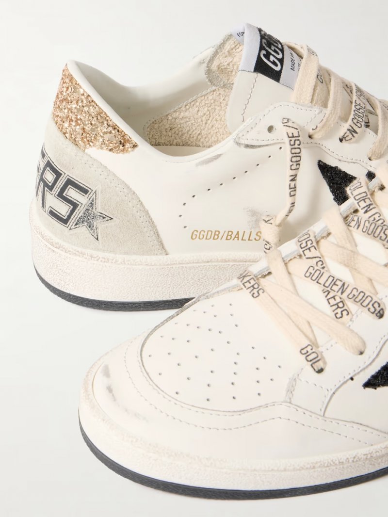 - White leather, gold and black glittered leather, off-white suede (Cow)