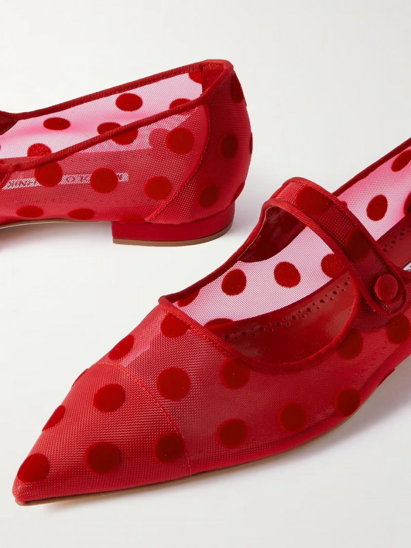 - Red grosgrain and flocked mesh