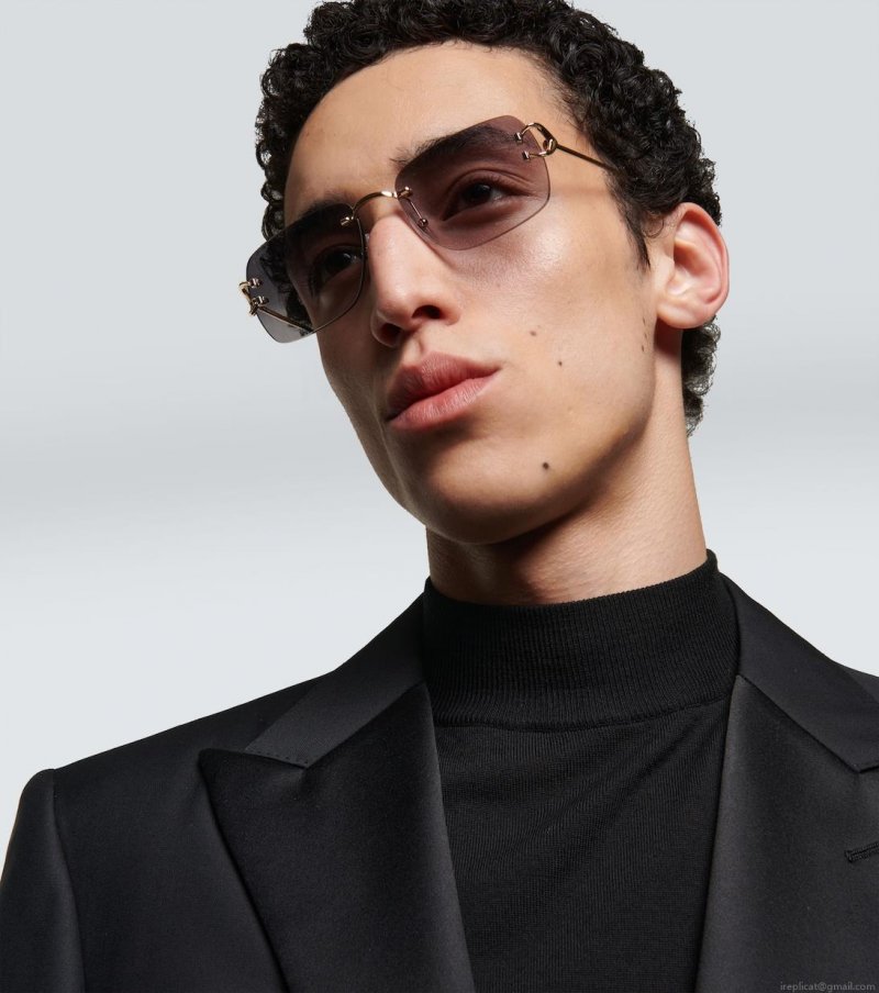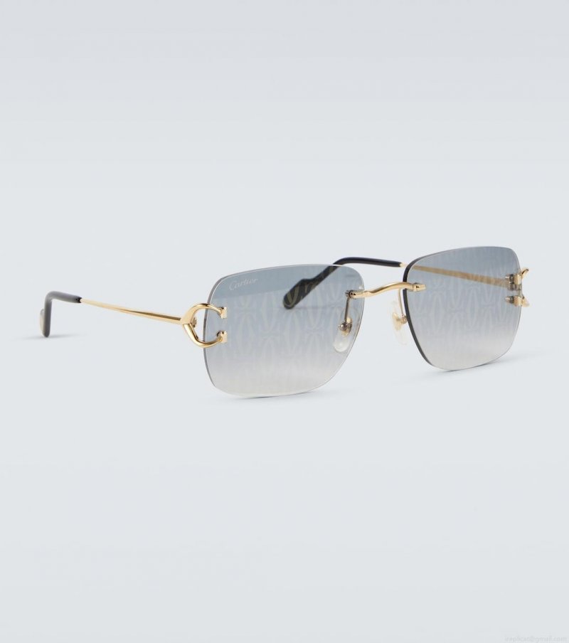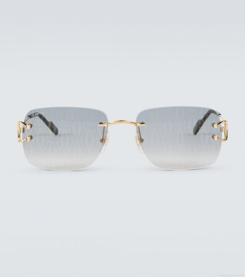 Sleek and sophisticated, these rectangular sunglasses from Cartier Eyewear Collection offer timeless elegance. Boasting exclusive details, the monogram grey lenses are adorned with golden hardware for an elevated finish.