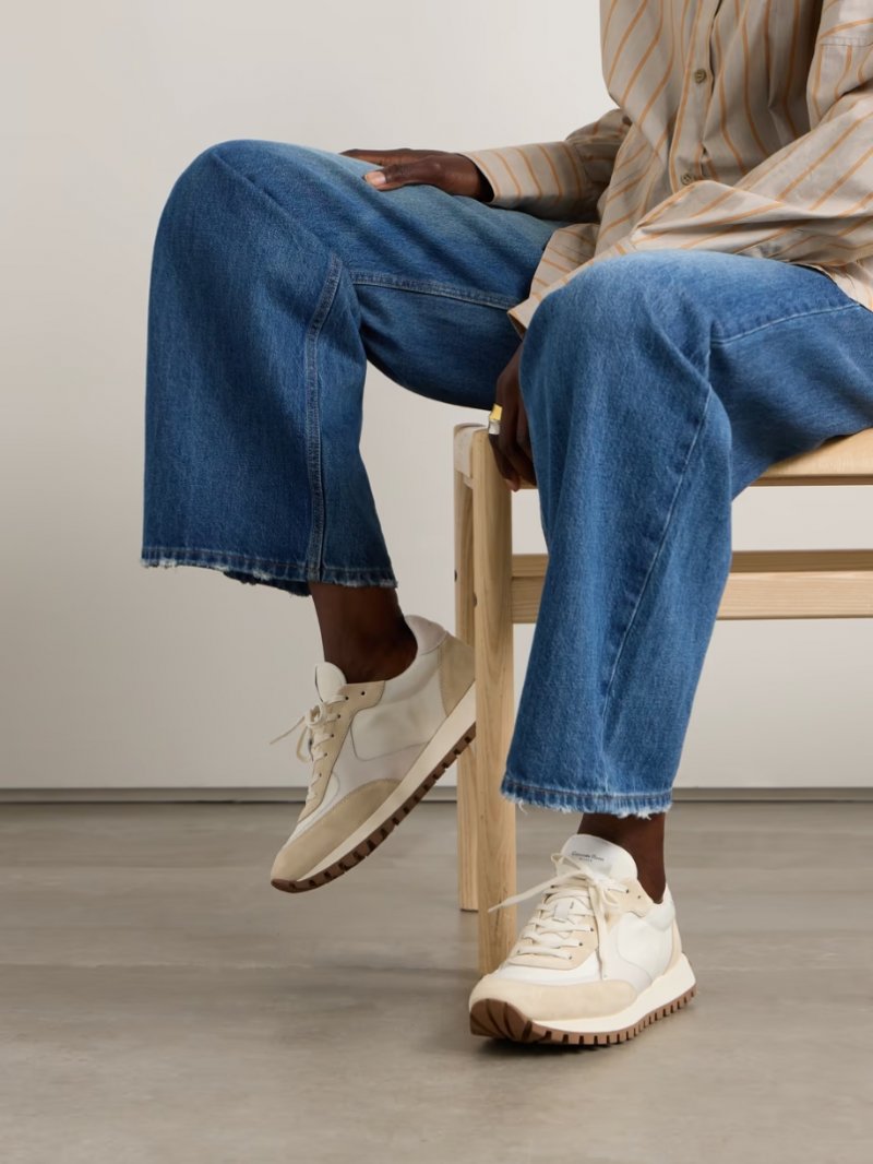 - Beige suede, off-white leather (Calf, Lamb) and shell