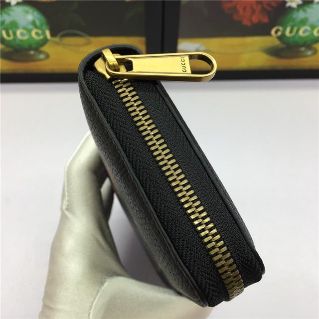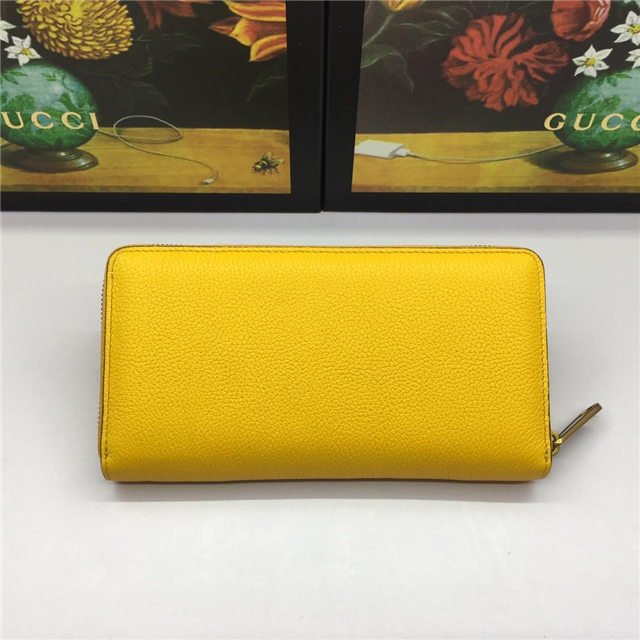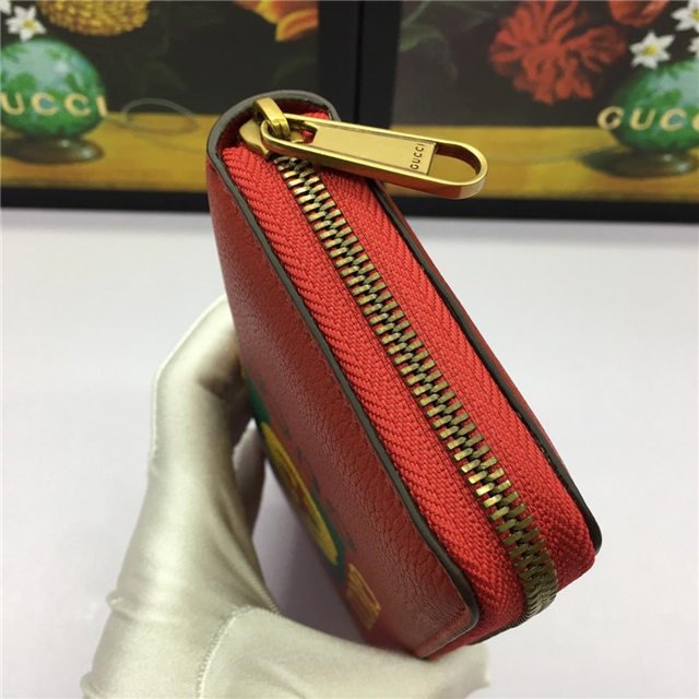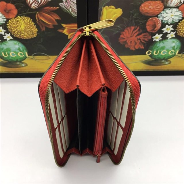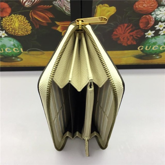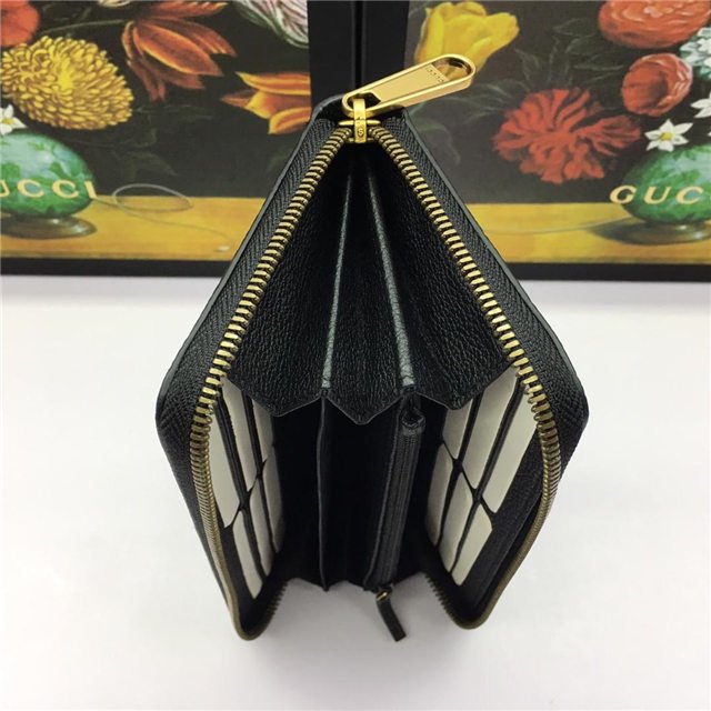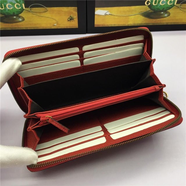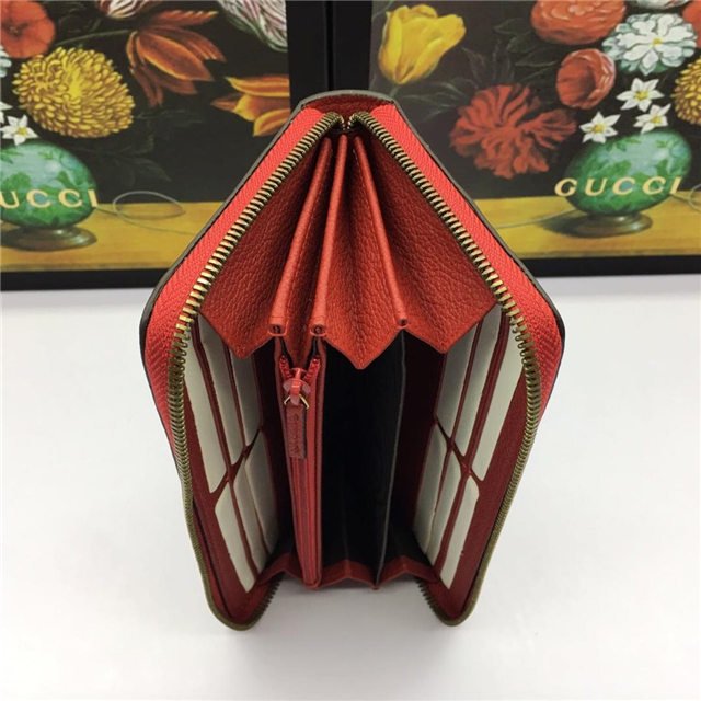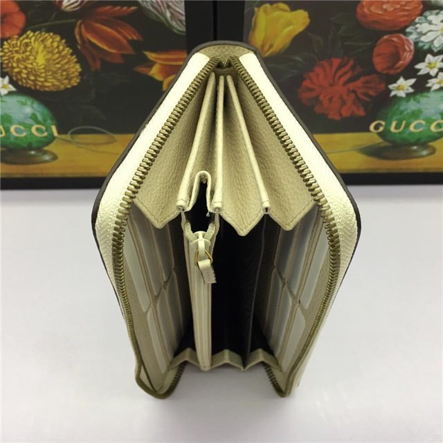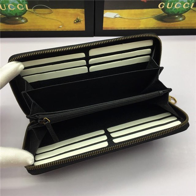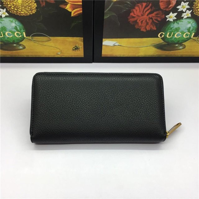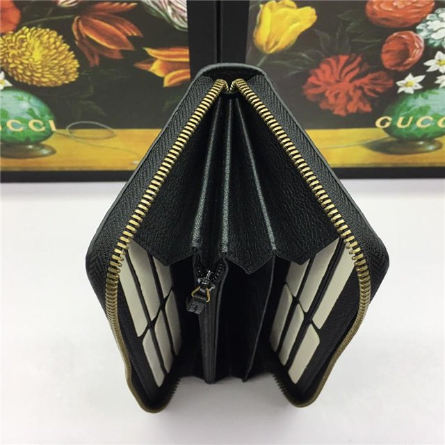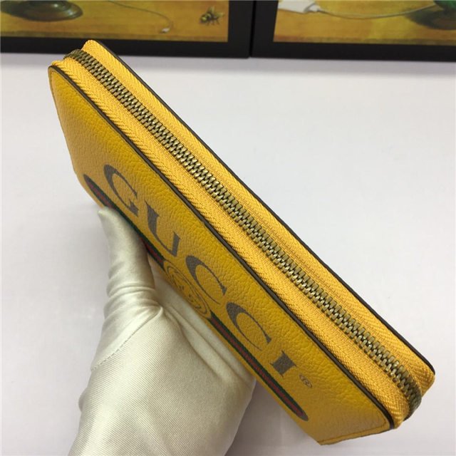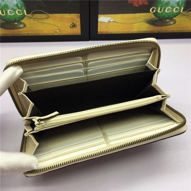 Inspired by vintage prints from the eighties, the Gucci logo is brought to the forefront. The retro-style motif is presented on the front of a zip around wallet in supple, textured leather.