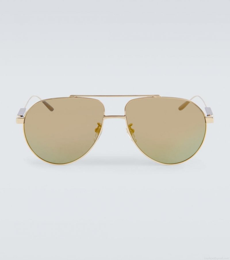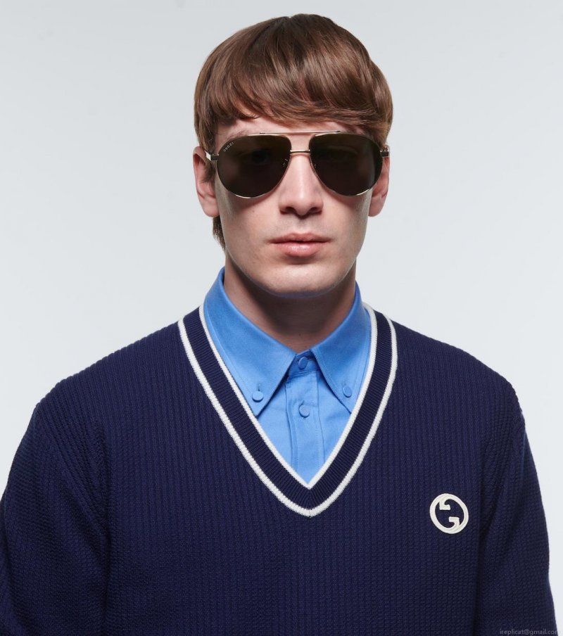 Infused with retro codes, Gucci's ultra-cool approach to contemporary is showcased by these aviator sunglasses. Featuring a gold-tone wire frame with a cutout brow bar, this style offers UVA protection with logo-detailed tinted lenses.