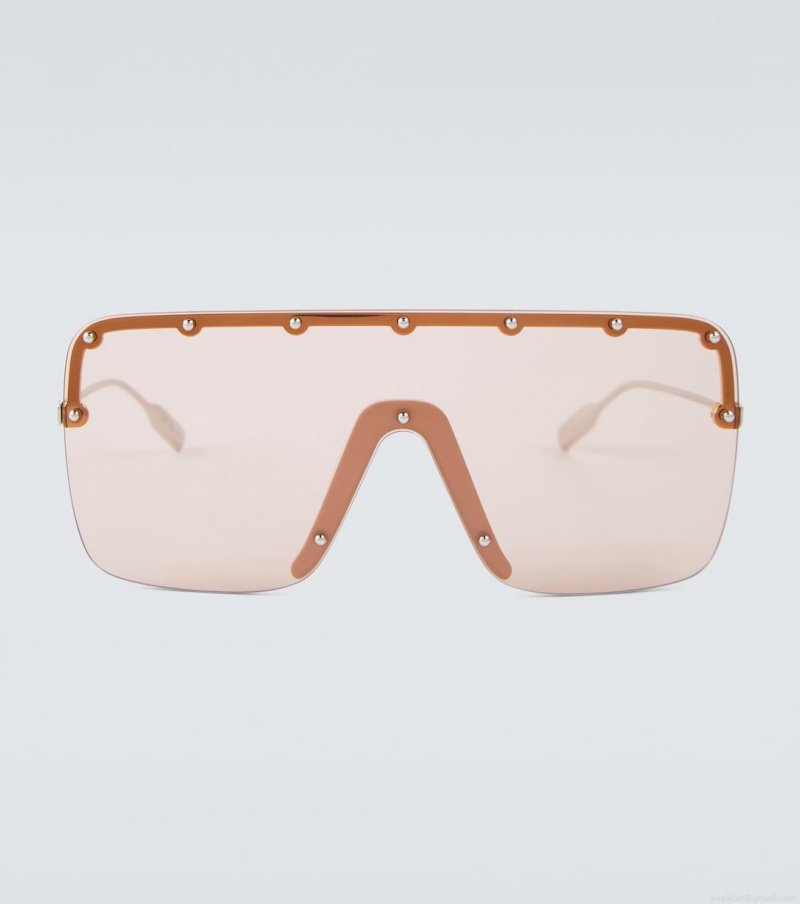 Gucci's mask sunglasses fuse sport detailing with studded glamour. Sleek gold frames are accented with uniform studs in the metal-on-metal design and complete with Interlocking G detailing on the temples.
