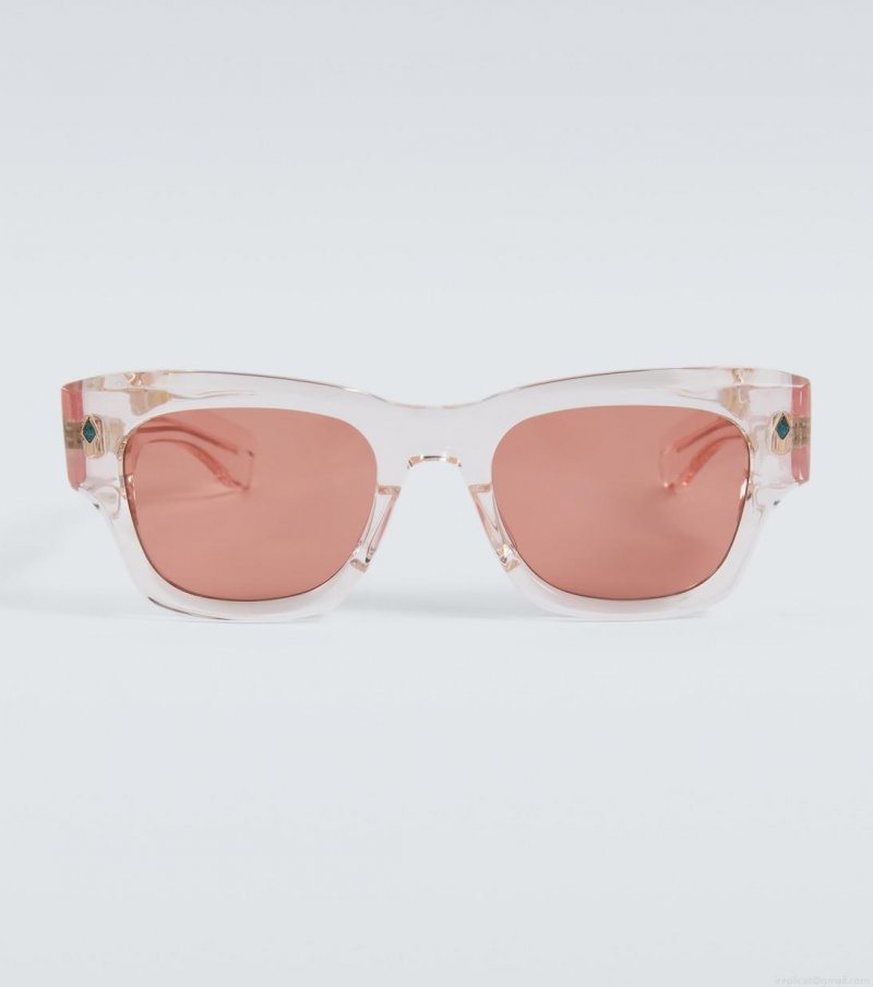 Jacques Marie Mage’s exclusive collaboration with Alanui celebrates culture and craftsmanship. The Zuma square-shaped sunglasses boast transparent frames accented with Western-inspired hardware at the temples and rose-hued lenses.