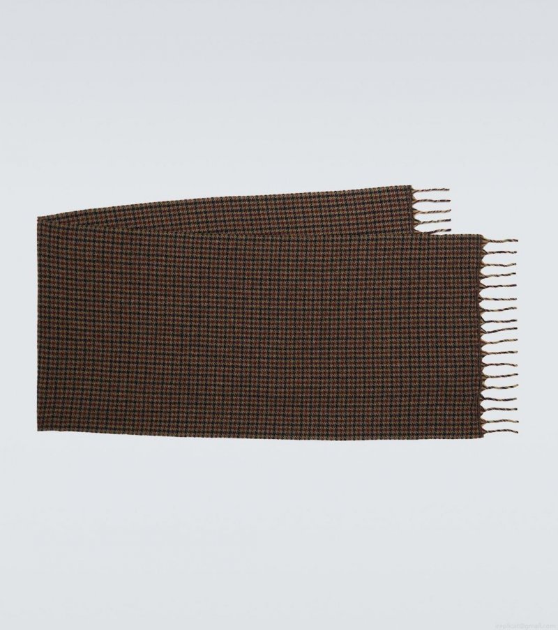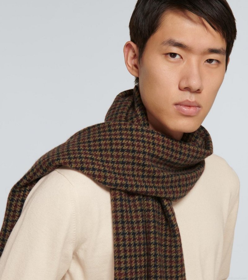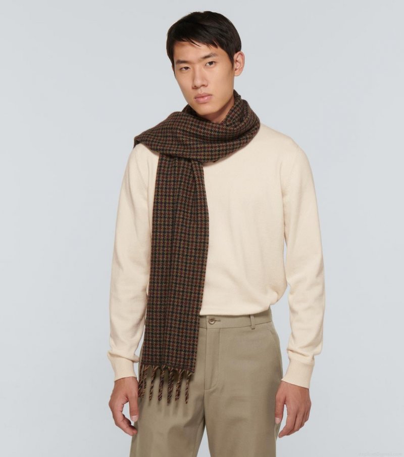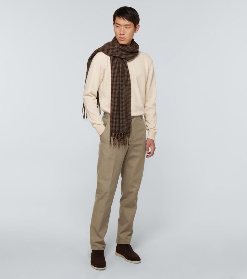 In brown, this houndstooth motif scarf from Loro Piana is Italian-crafted entirely from cashmere and features fringed edges.