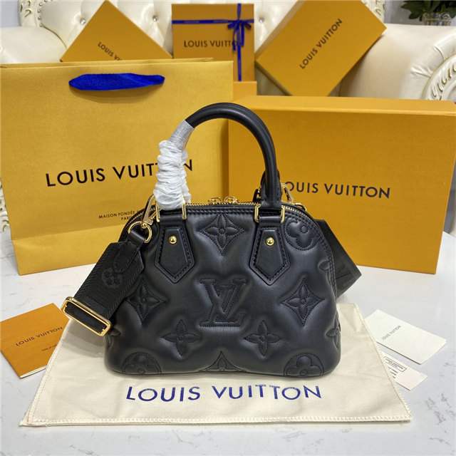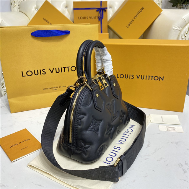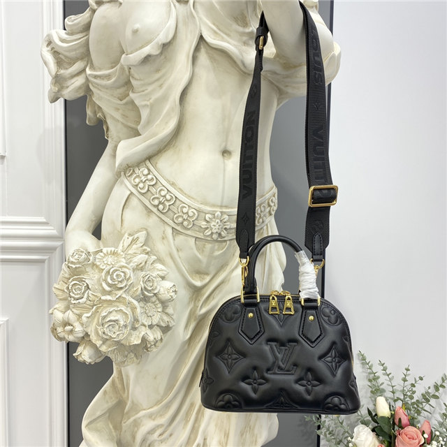 Made from quilted calfskin embroidered with the Monogram motif, the Alma BB handbag is the direct descendant of the Art Deco original from the 1930s. Crafted details like the two rolled-leather top handles complement the puffy leather. Equipped with a removable and adjustable strap, this small bag is perfect for cross-body wear in addition to hand carry.