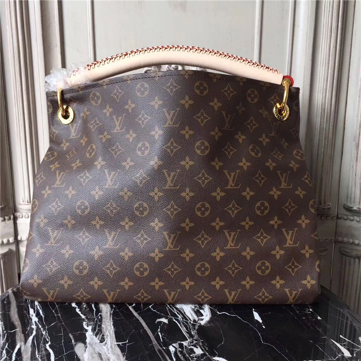 The Artsy MM embodies understated bohemian style. Louis Vuitton””s iconic and divinely supple Monogram canvas is enhanced by rich golden color metallic pieces and an exquisite handcrafted leather handle.