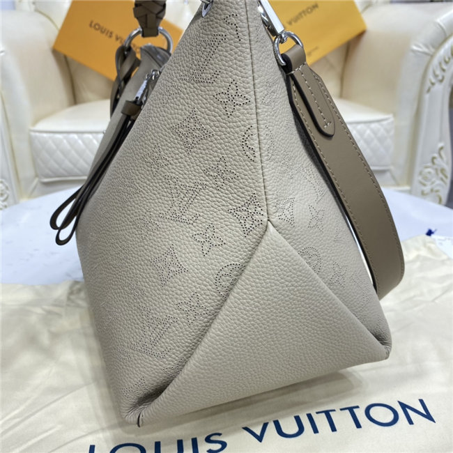 The Beaubourg Hobo MM bag is made from Mahina calf leather perforated with the Monogram pattern. It boasts a stylishly braided-leather top handle, with hand-painted edge-dyeing along the braids. The leather zip pulls and large LV charm sign the bag. A detachable, wide leather strap means that this supple bag feels comfortable against the body.