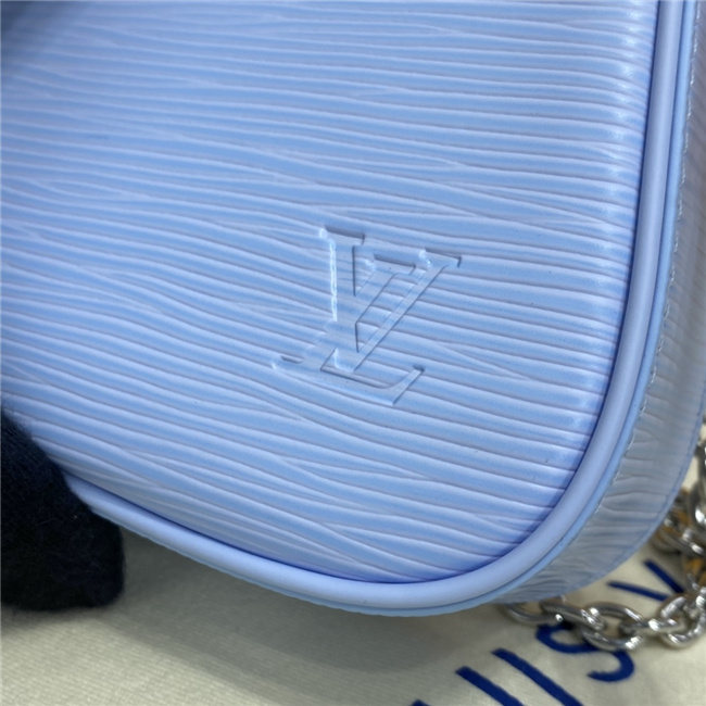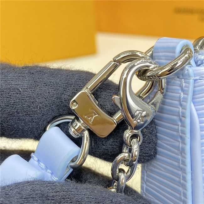 The Easy Pouch on Strap is a sleek design in grained Epi leather, discreetly embossed with the LV Initials. Large enough to hold everyday essentials, this on-trend model is notable for its versatility, featuring a removable chain and a removable, adjustable leather strap for shoulder or cross-body carry. The D-ring on the outside can be used to attach a charm.