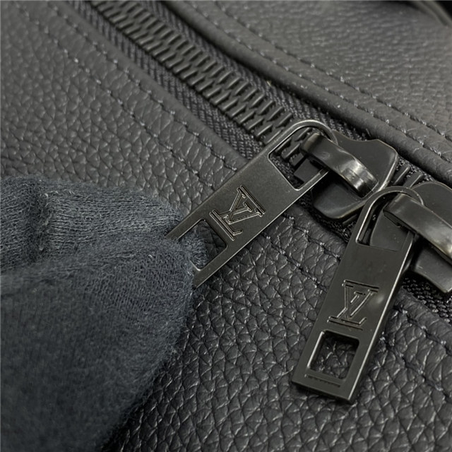 The new LV Aerogram version of the Keepall exudes low-key chic in soft, finely grained black cowhide. A host of discreet details, like the black metal “LV” initials, a customizable leather tag and a removable Jacquard strap, give it an unmistakable Louis Vuitton signature. And its user-friendly size and multiple carry options make it a versatile travel bag.