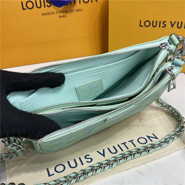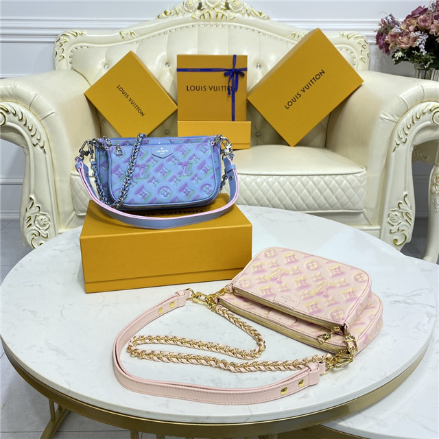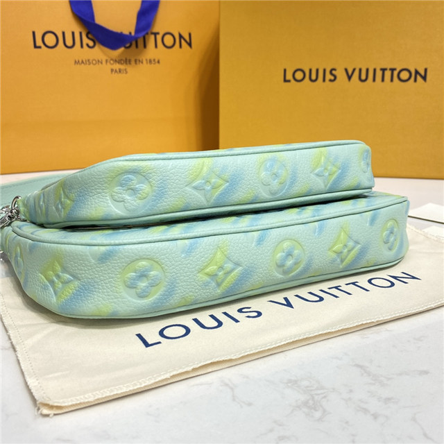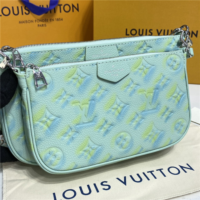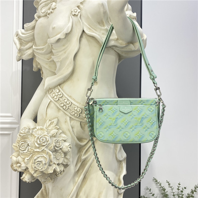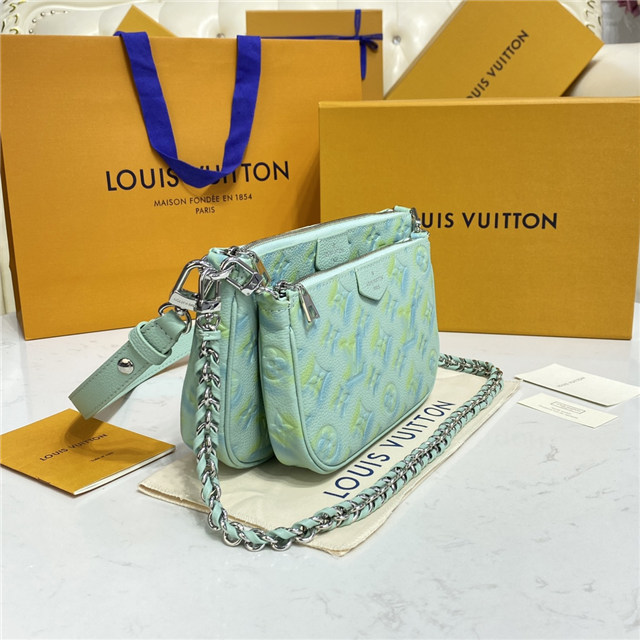 With a glimmering iridescent aspect, this Multi Pochette Accessoires cross-body bag is made from embossed Monogram Empreinte leather in a colorway achieved by a three-step spraying technique. Just the right size to carry a woman’s essentials, this practical bag combines two detachable pouches. It features both a removable chain and a detachable, adjustable strap.