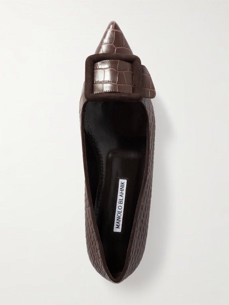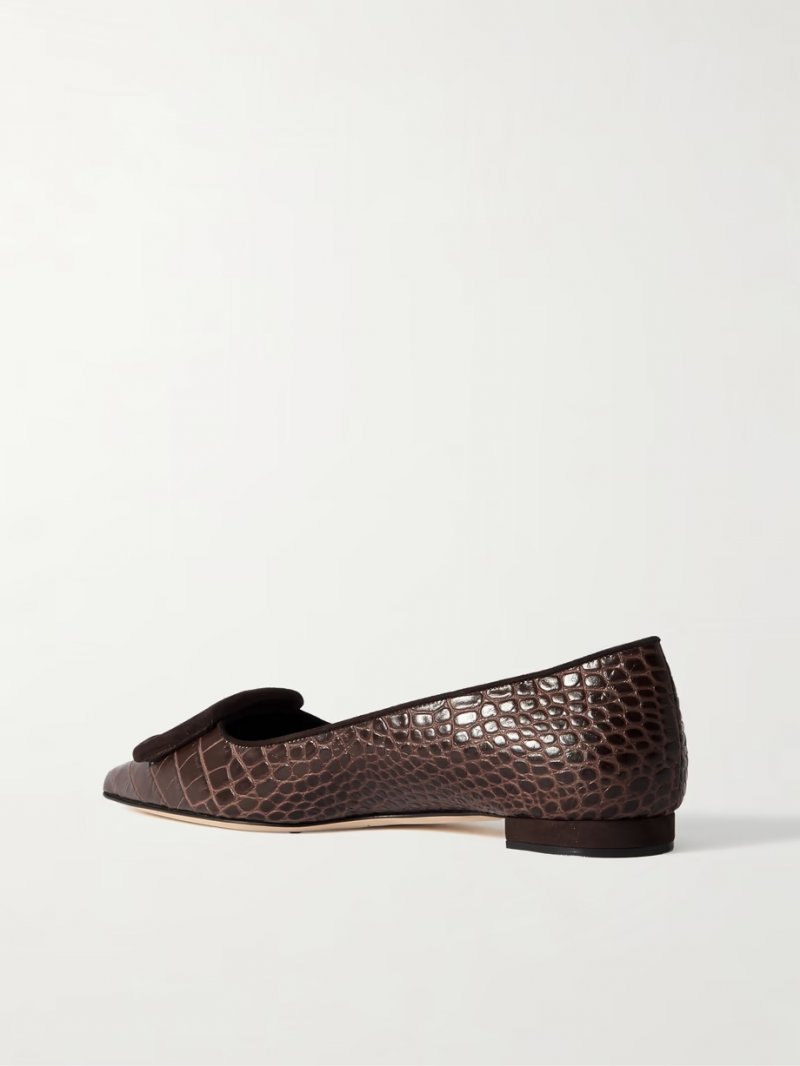 - Brown croc-effect leather (Calf) and suede (Kid)