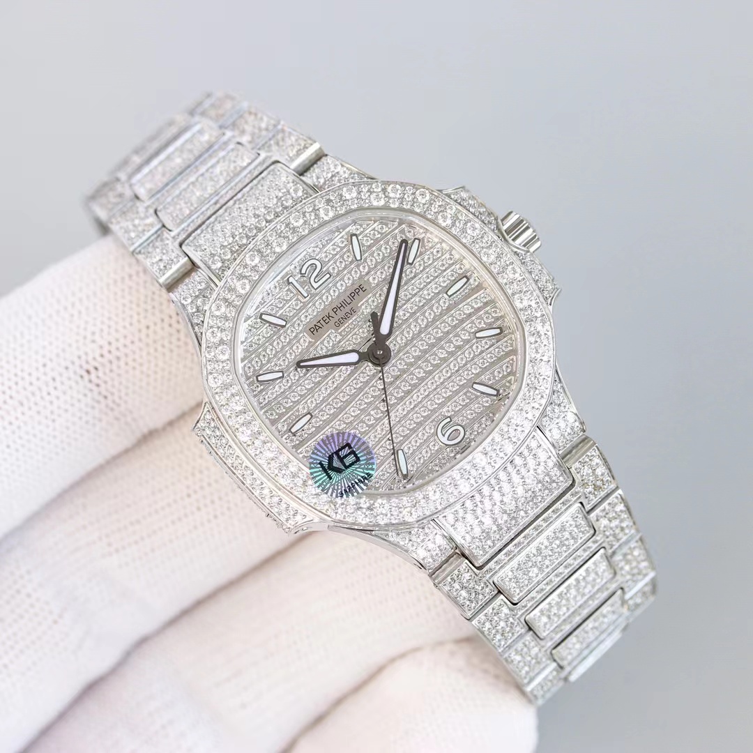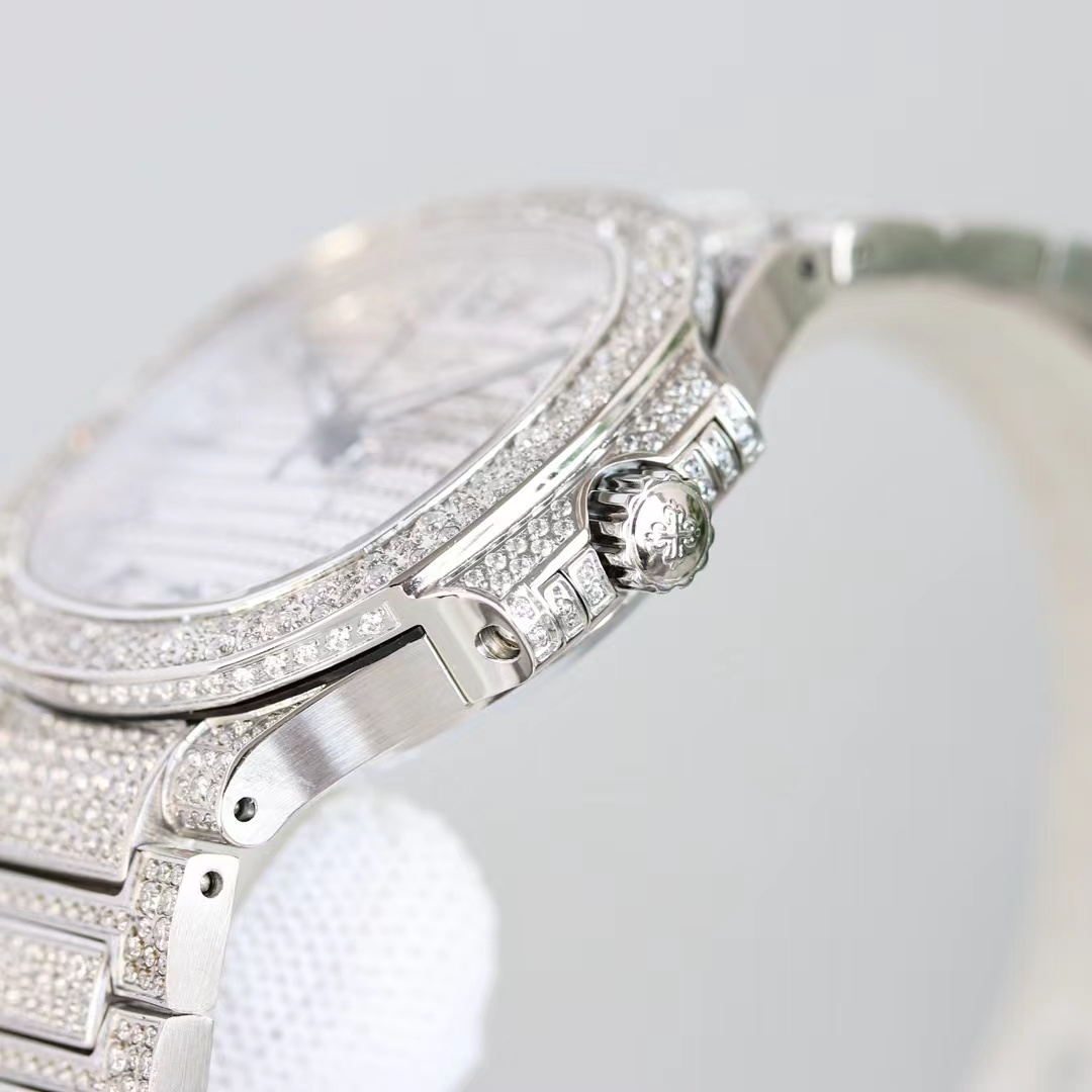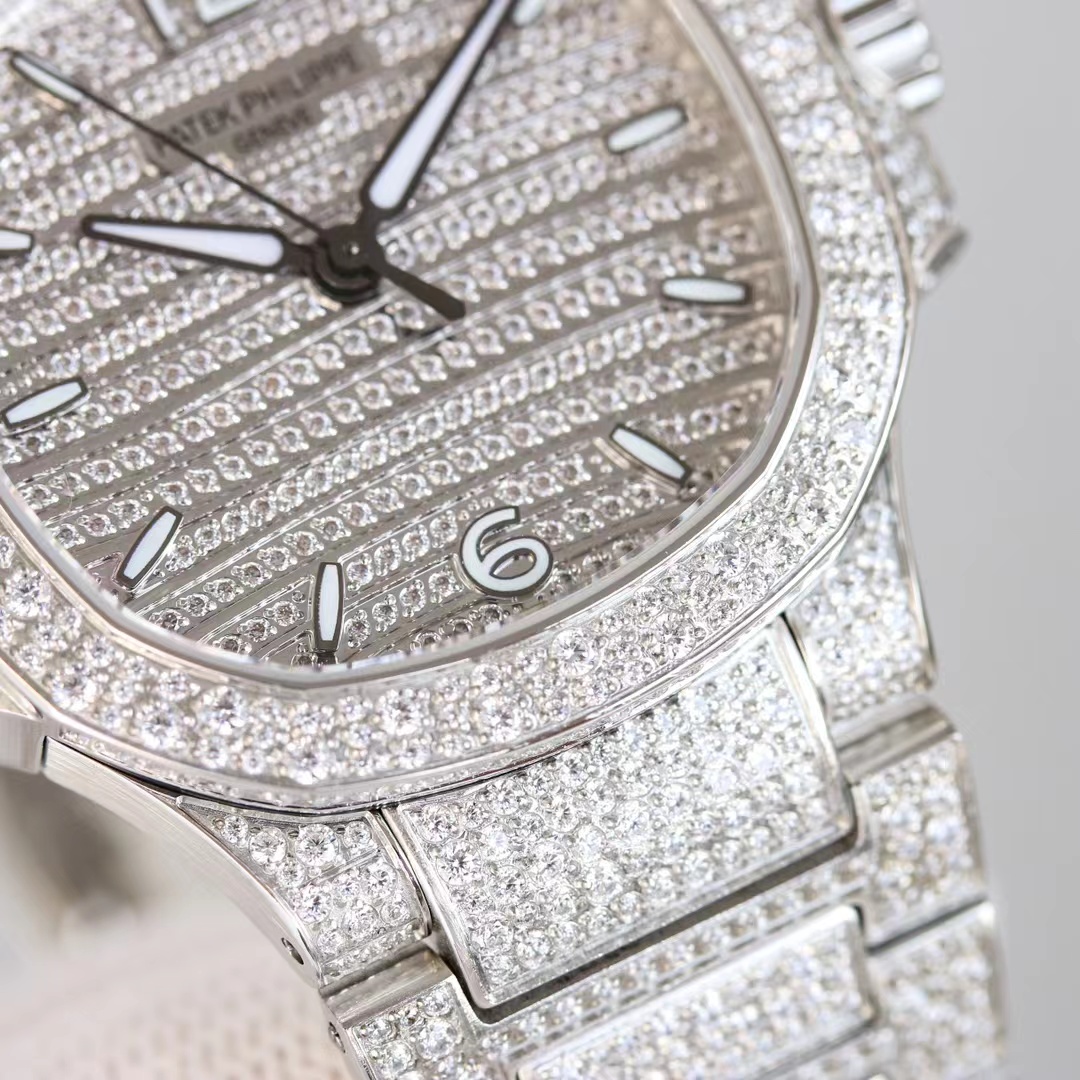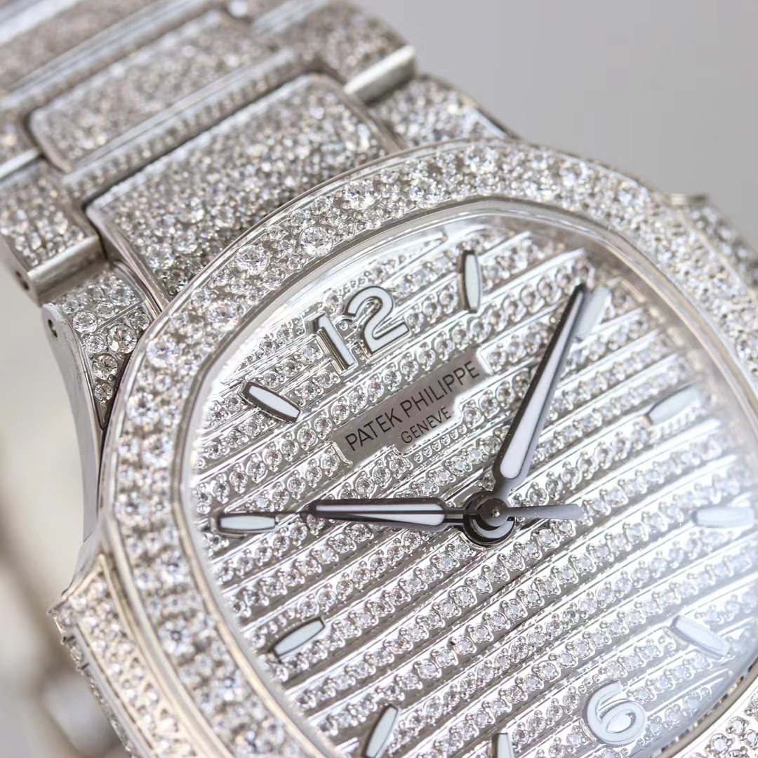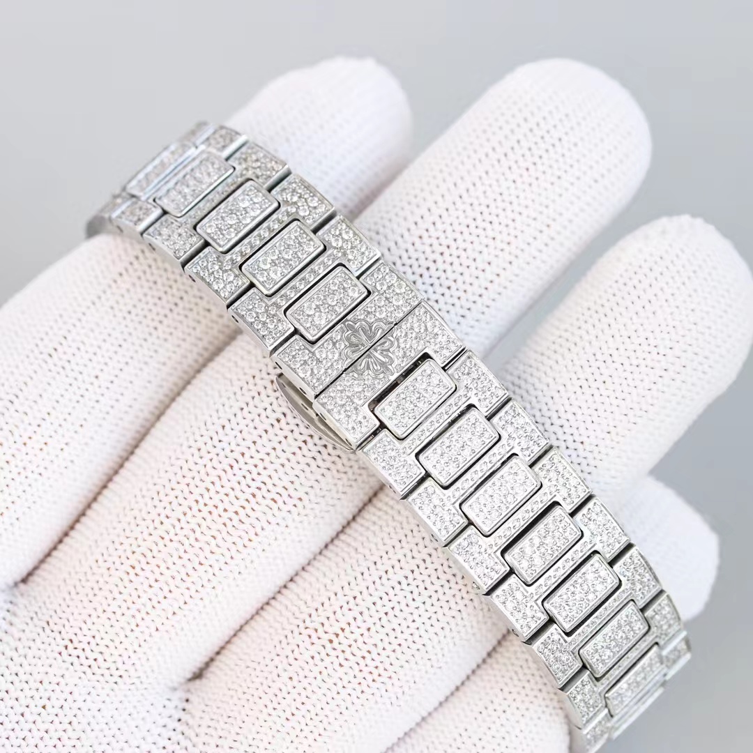 The top-of-the-line Patek Philippe 7118 Ladies’ Nautilus is the epitome of luxury. It is an irresistible timepiece with its full diamond embellishment, sparkling on both the dial and bracelet. The watch is available in either vacuum furnace white gold or nano-rose gold (white for vacuum furnace white gold, and rose for nano-rose gold).