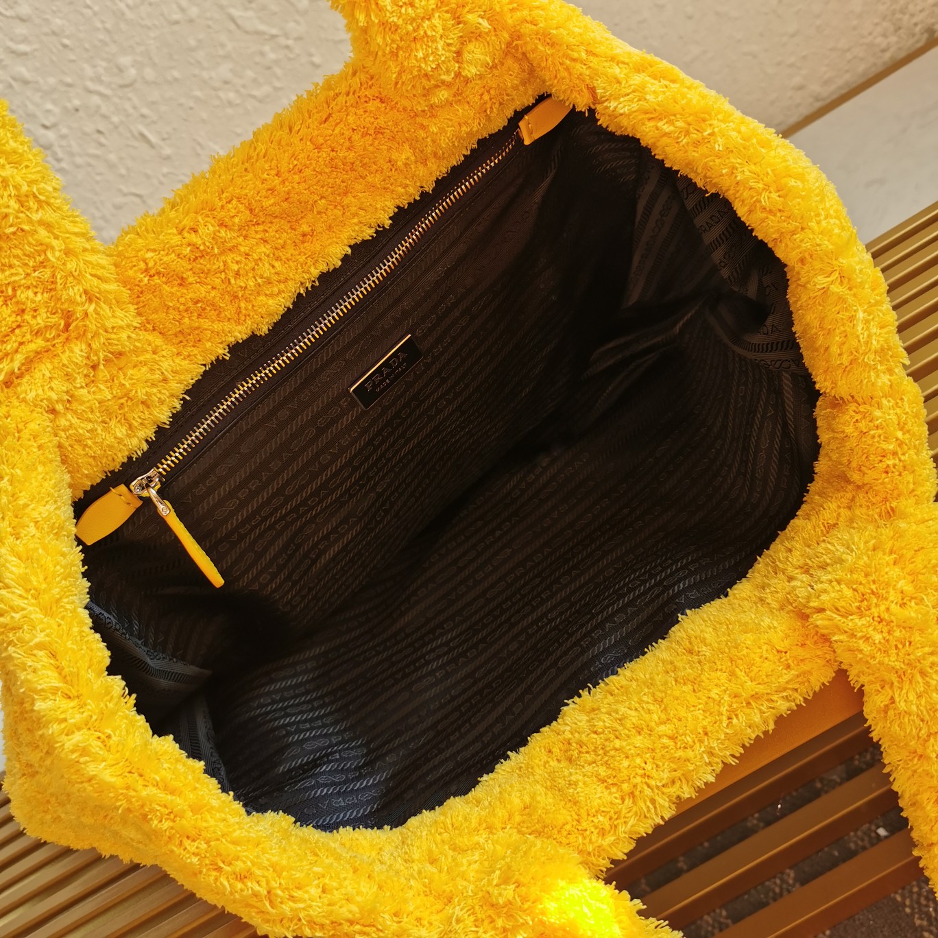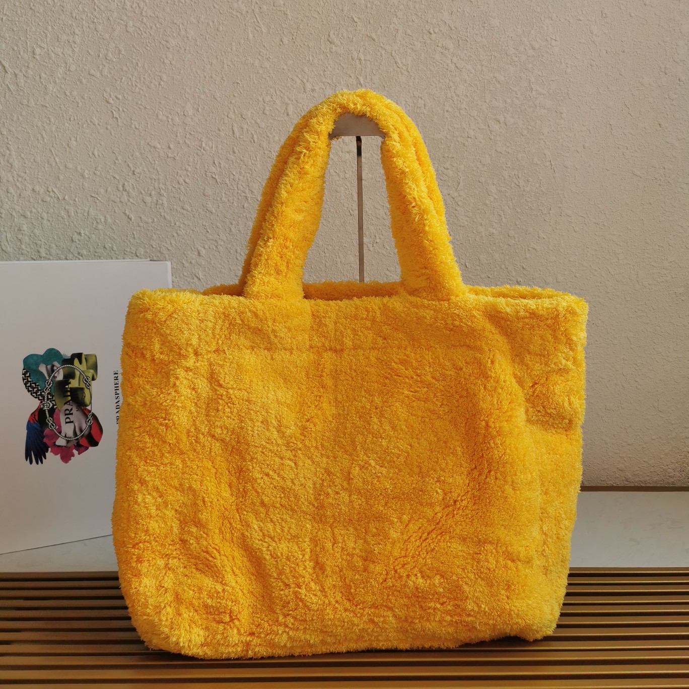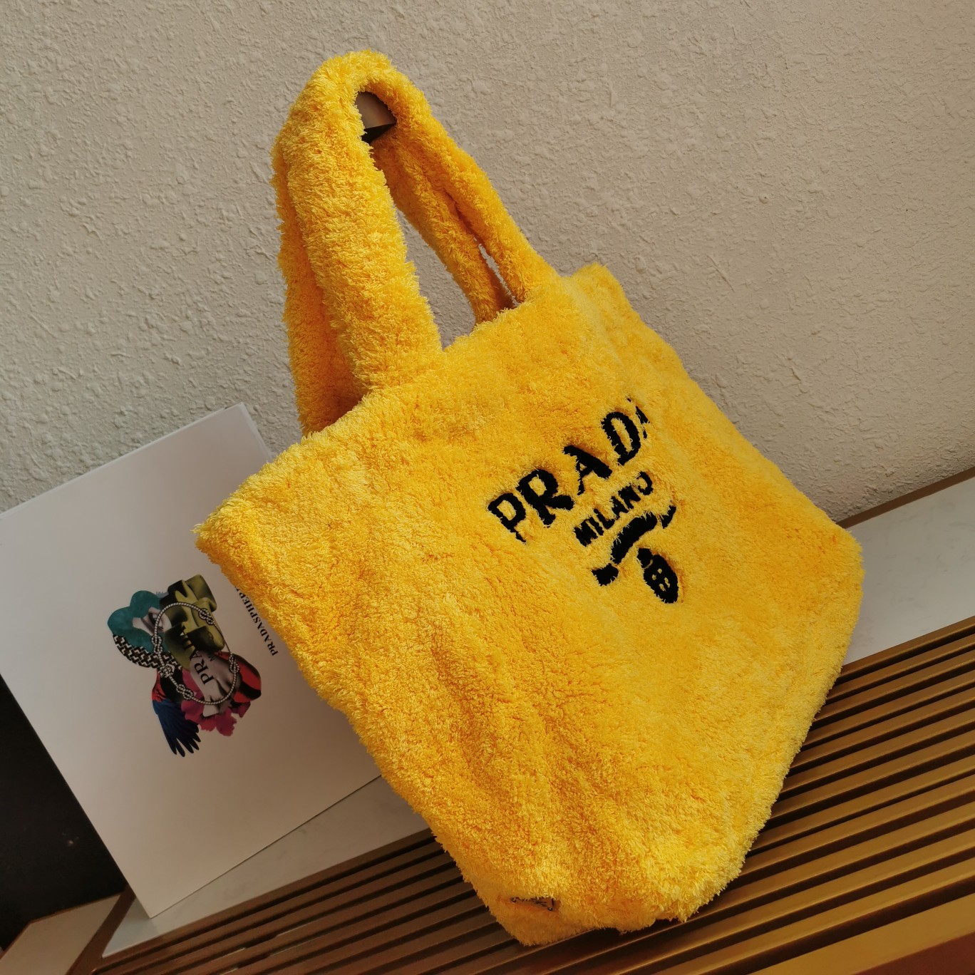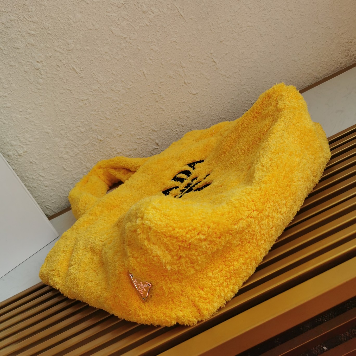 【Top-grade Original】Fluffy Tote Bag, this tote bag is crafted from soft plush loop fabric, presenting a dynamic color contrast and playful design style, exuding a summer vibe. The iconic oversized embroidered logo embellishes the front of the bag, showcasing the brand’s style. It looks great when carried by hand or under the arm, so hurry up and buy it.
