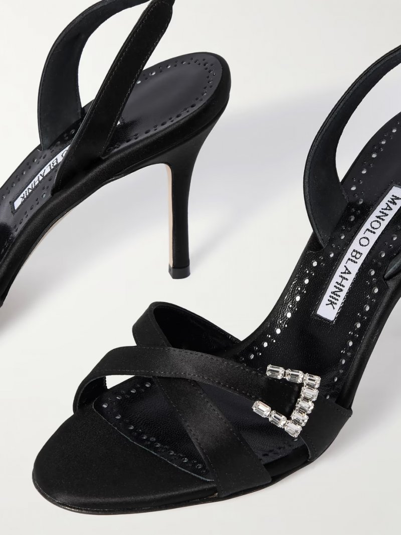• Ramisli 90 crystal-embellished satin slingback sandals