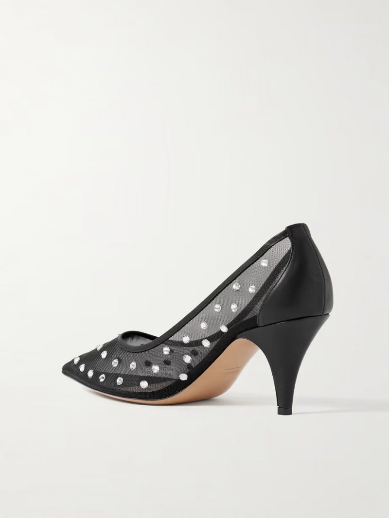 • River Iconic leather-trimmed crystal-embellished mesh pumps