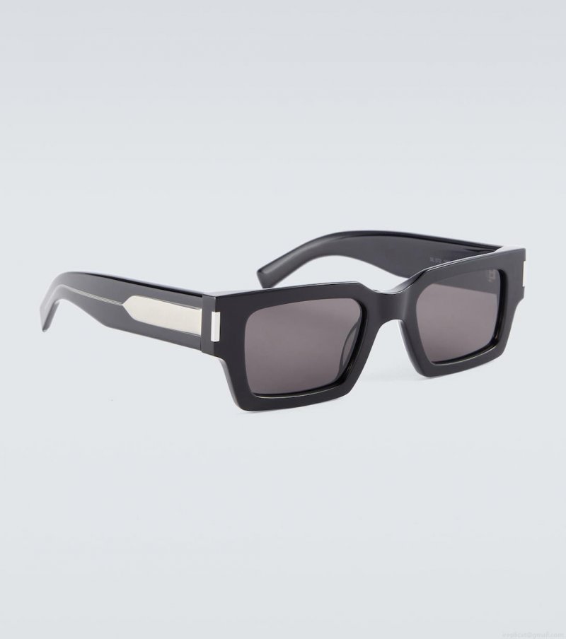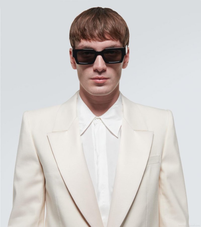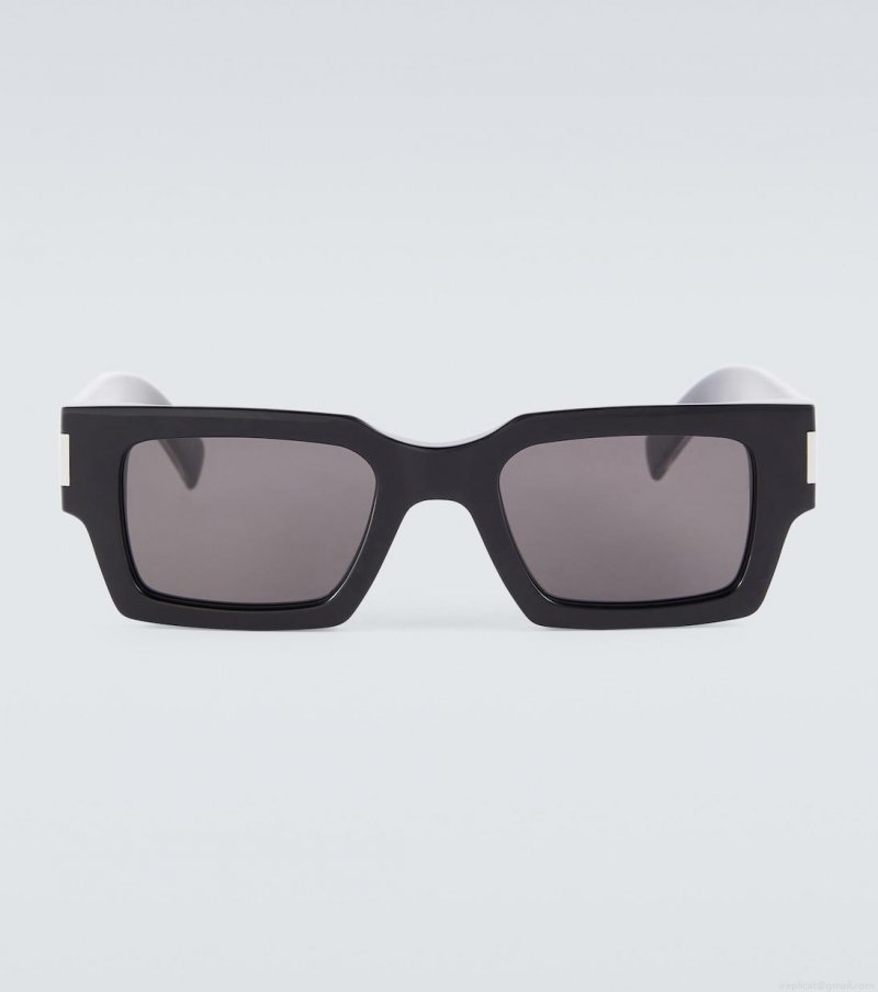 Saint Laurent's esteemed elegance is spotlighted by this accessory. Featuring rectangular acetate frames, these Japanese-made sunglasses have UVA/B-protective tinted lenses and silver-tone sides with logo engraving.