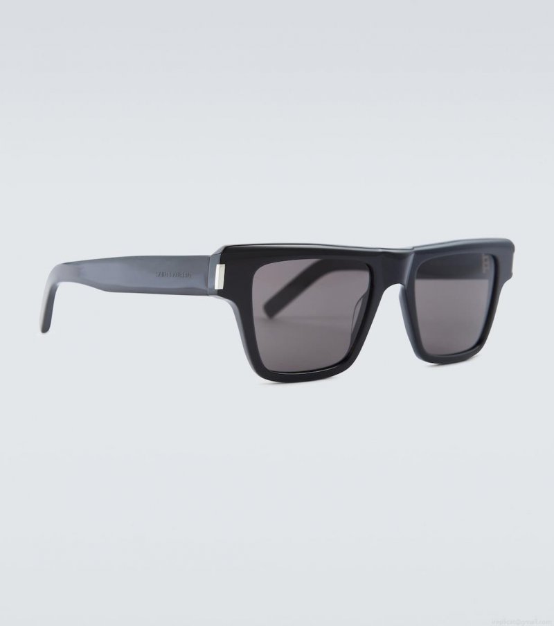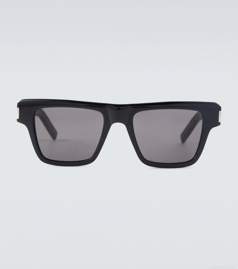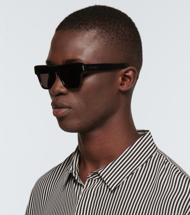 These black sunglasses from Saint Laurent have thick acetate frames, black-tinted lenses and an engraved logo at the temples. This style comes in a leather case, the color of which may vary.